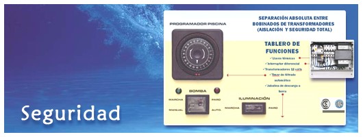 EQUIPO DE FILTRACIÓN: ubicamos todo el equipo en un gabinete de material o de fibra de vidrio reforzado opcional, totalmente estanco si usted lo prefiere. El tablero eléctrico de control posee los transformadores de luminarias en una caja estanca doblemente protegidos, con garantía de total seguridad. Así mismo lo completamos con filtrado automático y todos los elementos de seguridad necesarios.